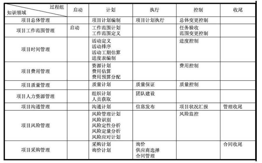 啟動、計畫、執行、控制、收尾