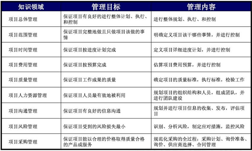 PMBOK涉及專案管理的九大知識領域:專案集成管理;專案範圍管理;專案時間管理;專案成本管理;專案品質管制;專案人力資源管理;專案溝通管理;專案風險管理;專案的採購管理。獲得PMP的認證,將是通往高級、核心管理部門的通行證。PMP的資質證書不僅在美國,在全世界均享有很高的權威性。目前國際上各大公司把中、高級管理人員擁有PMP認證作為錄用首選條件。據統計,在美國從業的專案管理初級工作人員年薪為4.5萬—5.5萬美元。中級人員為6.5萬—8.5萬美元,高級人員為11萬—30萬美元,比一般的技術人員、管理人員都要高出很多。我們相信,世界權威的PMP資格認證的引入必將為中國的專案管理人員和有關企業帶來更多的機遇。獲得PMI資格認證者,將擁有更加輝煌的職業生涯,而擁有較多PMI認證人員的企業也必將增強其市場競爭能力。根據美國《財富》雜誌預測,專案管理將成為21世紀的首選職業。